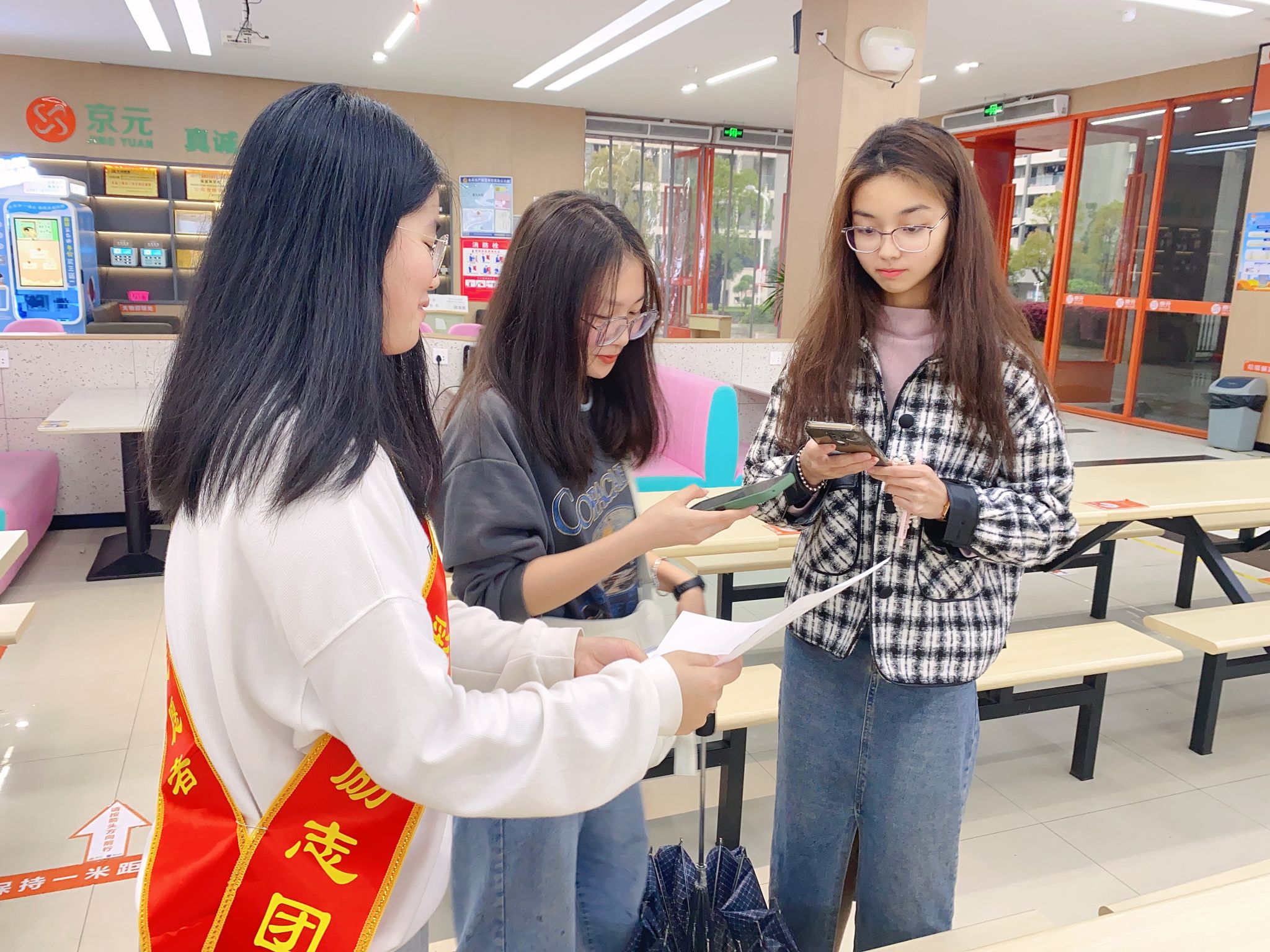 活动现场,志愿者结合典型案例,围绕金融网络诈骗的常见手段、防范非法金融活动、珍爱征信等主题和同学们展开面对面交流。通过横幅宣传、发放精制卡套和扫二维码观看学习金融知识等多种学生喜闻乐见的方式,向同学们介绍识别非法金融广告和保护个人金融信息的有关知识,提醒大家守好自己的钱袋子,重视自己的个人征信。