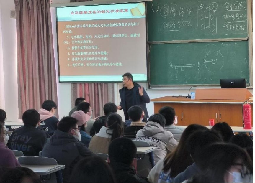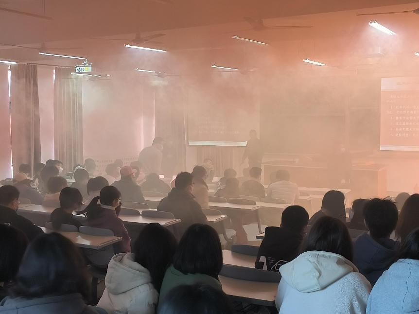 在消防安全知识教育讲座中,安全保卫处有关老师通过列举近年来各个高校所发生过的火灾案例,提醒同学们要注意遵守校规校纪,防止发生火灾,并讲解了火灾类型、火灾成因、火灾特点、初始火灾扑救、正确逃生方法等知识;在疏散演练中,伴随消防应急广播响起,同学们在老师的指引下,兵分两路有条不紊地从安全通道中逃离现场,过程有序迅速;老师和同学们还在图书馆南侧空场地开展了灭火演练活动。