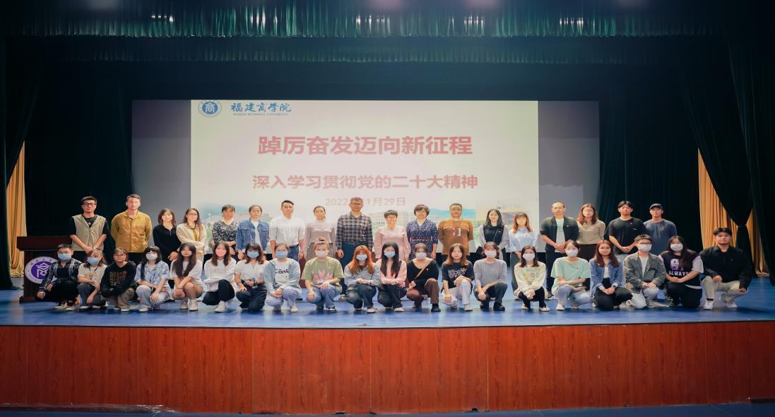 近日,福州市委讲师团成员、福建师范大学杨林香教授在开云官网连江校区学生活动中心开展题为《踔厉奋发迈向新征程——深入学习贯彻党的二十大精神》的专题讲座。开云官网艺术设计学院、马克思主义学院、财务与会计学院、团委、习近平新时代中国特色社会主义思想学生读书社及“青马班”师生代表参加了学习。