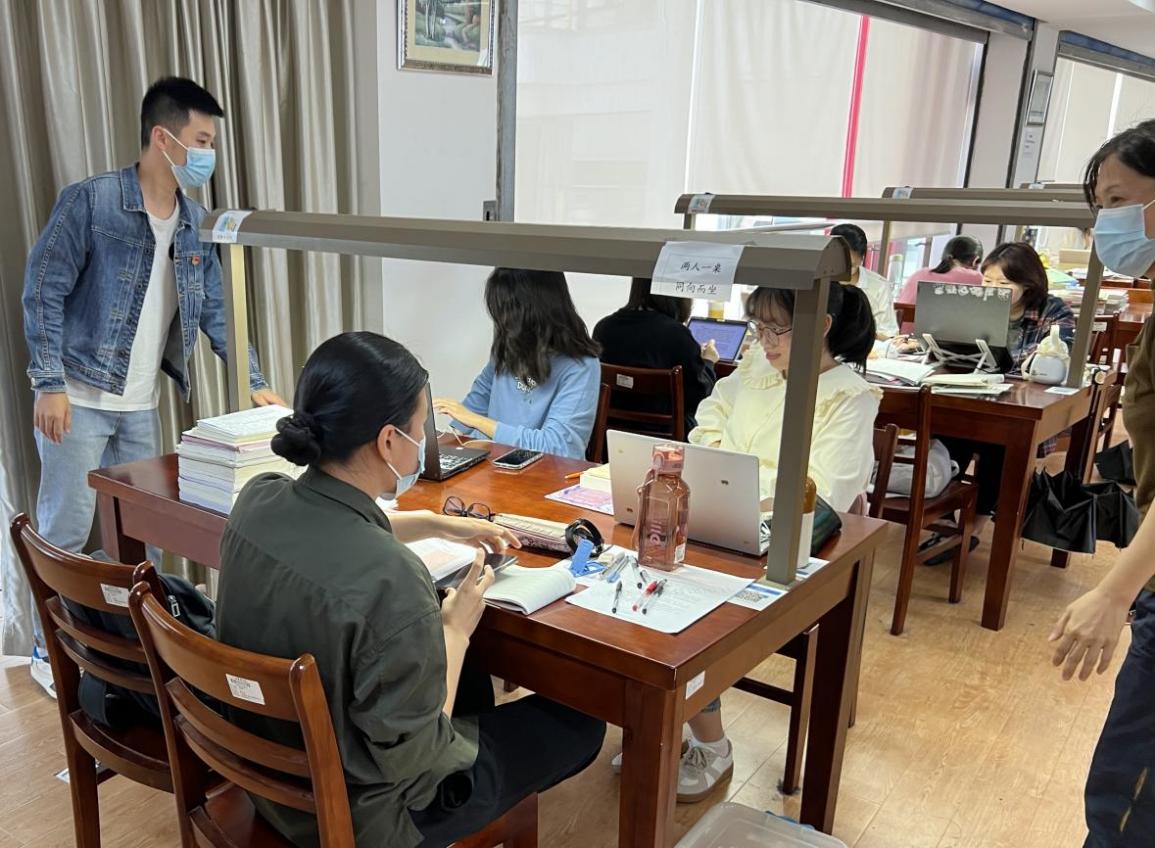 一是防疫宣传到位。图书馆充分利用微信公众号、门户网站、LED显示屏等媒介展开防疫宣传,普及防疫知识,向读者传递正能量。二是卫生消毒到位。教师党员带头对书库、自习室、研究间等阅读区域进行卫生清扫,确保馆内干净整洁;同时对报刊、书籍进行消毒上架,确保书刊流通安全。三是文明督导到位。图书馆党支部联动二级学院党支部,严格执行“佩戴口罩、体温检测”等入馆查验工作,引导读者有序入馆、间隔就坐;教师党员带头巡查督导,规范读者阅读行为,引导文明阅读风尚。四是线上服务到位。通过线上推送“今日书单”“馆藏品鉴”等专题栏目开展阅读推广活动;通过worldlib文献服务群、考研直播专题讲座等方式宣传数字资源;加强维护图书馆信息系统,确保线上资源服务不停歇。五是线下服务到位。一方面,为保障封校期间开馆工作人员补给,支部根据属地原则,调动居住在学校当地的党员助力窗口服务台值守,确保线下读者服务不打烊。另一方面,为缓解读者到馆压力,回应读者关心关切,图书馆为考研学子迅速划定固定座位专区,为流动读者增设9个公共置物柜,以最快速度、最大力度满足疫情期间不同读者群体到馆需求。