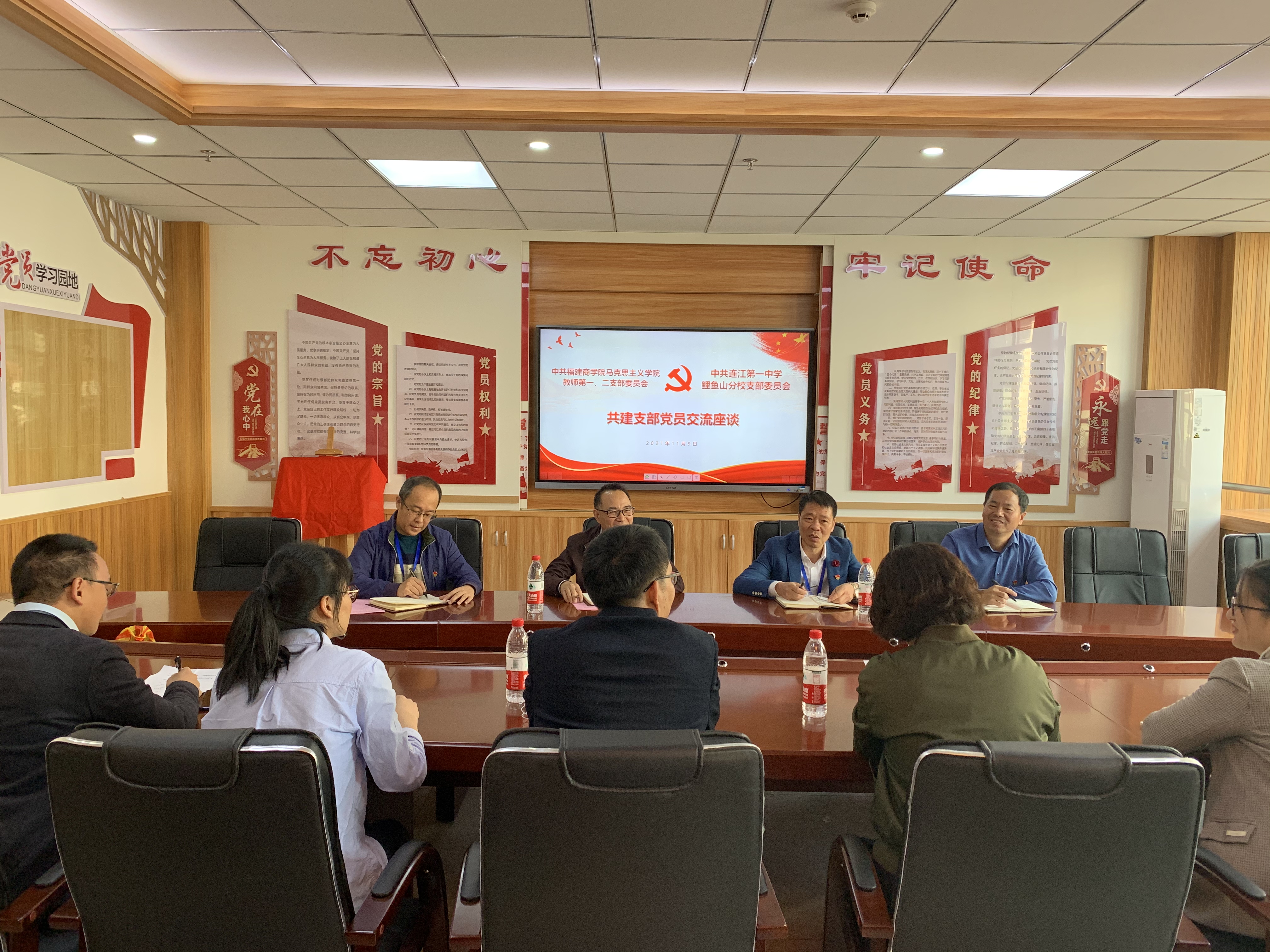 连江一中鲤鱼山分校党支部负责人介绍了支部党建基本情况,认为此次共建合作有利于将高校的理论优势和中小学的实践优势相结合,丰富双方党建工作的形式和内涵,是实现大中小学党建共建的一项有效举措。