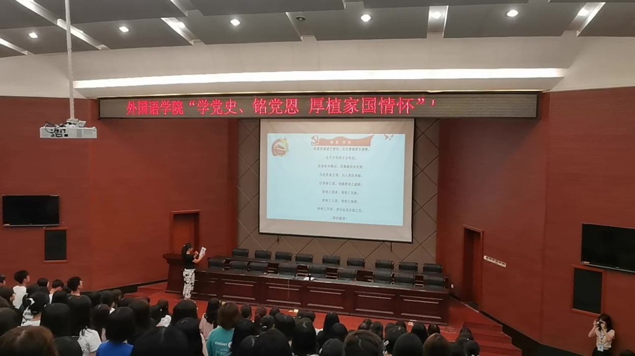 “以青春之我,创建青春之家庭,青春之国家,青春之民族,青春之人类,青春之地球,青春之宇宙,资以乐其无涯之生”。9月9日晚,外国语学院288名新生同声朗读李大钊先生的文章《青春》,开启外国语学院“师生共读红色经典”活动序幕。