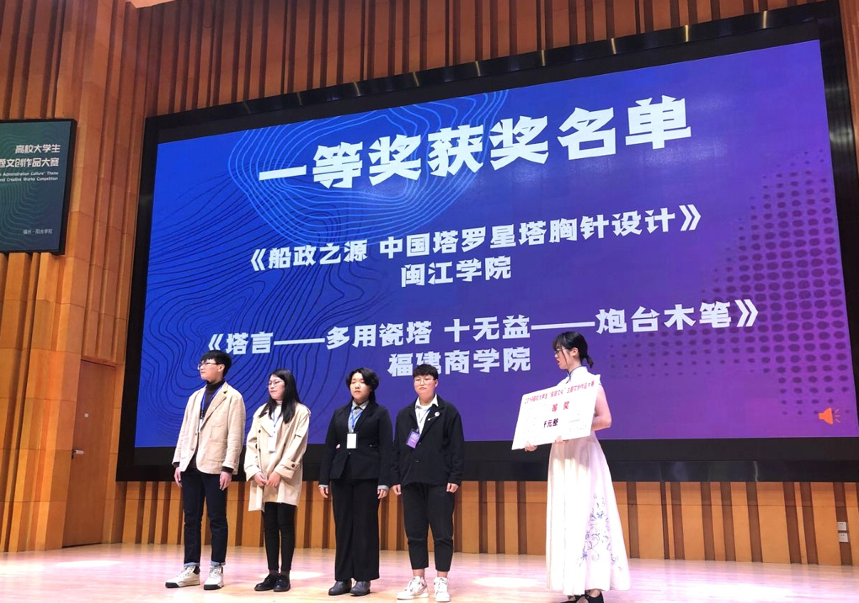 12月22日,历时6个月的2019高校大学生“船政文化”主题文创作品大赛总决赛在马尾阳光学院正式拉开帷幕。由开云官网艺术设计学院周鸿涛、周玲珠、倪嘉丽、潘欣欣四位同学组成的团队带着作品《十无益——炮台木笔 塔言——多用瓷塔 》一路过关斩将,最终取得了一等奖、最佳组织奖的优异成绩,指导老师林荣向、赖靓楠也获得了优秀指导教师奖。
