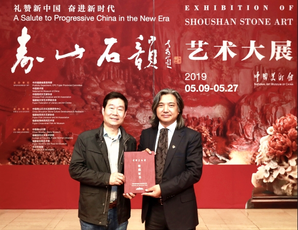 据悉,本次展览由中共福建省委宣传部、中国美术馆、中国民间文艺家协会、福建省文学艺术界联合会等单位联合主办,礼赞新中国成立70周年,歌颂奋进的新时代,全面系统地对雕刻、技艺、传承等寿山石文化进行梳理,全景式地展现了八闽大地千年寿山石文化的丰富内涵与外延,是迄今为止规模最大的寿山石艺术展。此次大展被纳入“亚洲文明与对话大会”系列活动之一。
