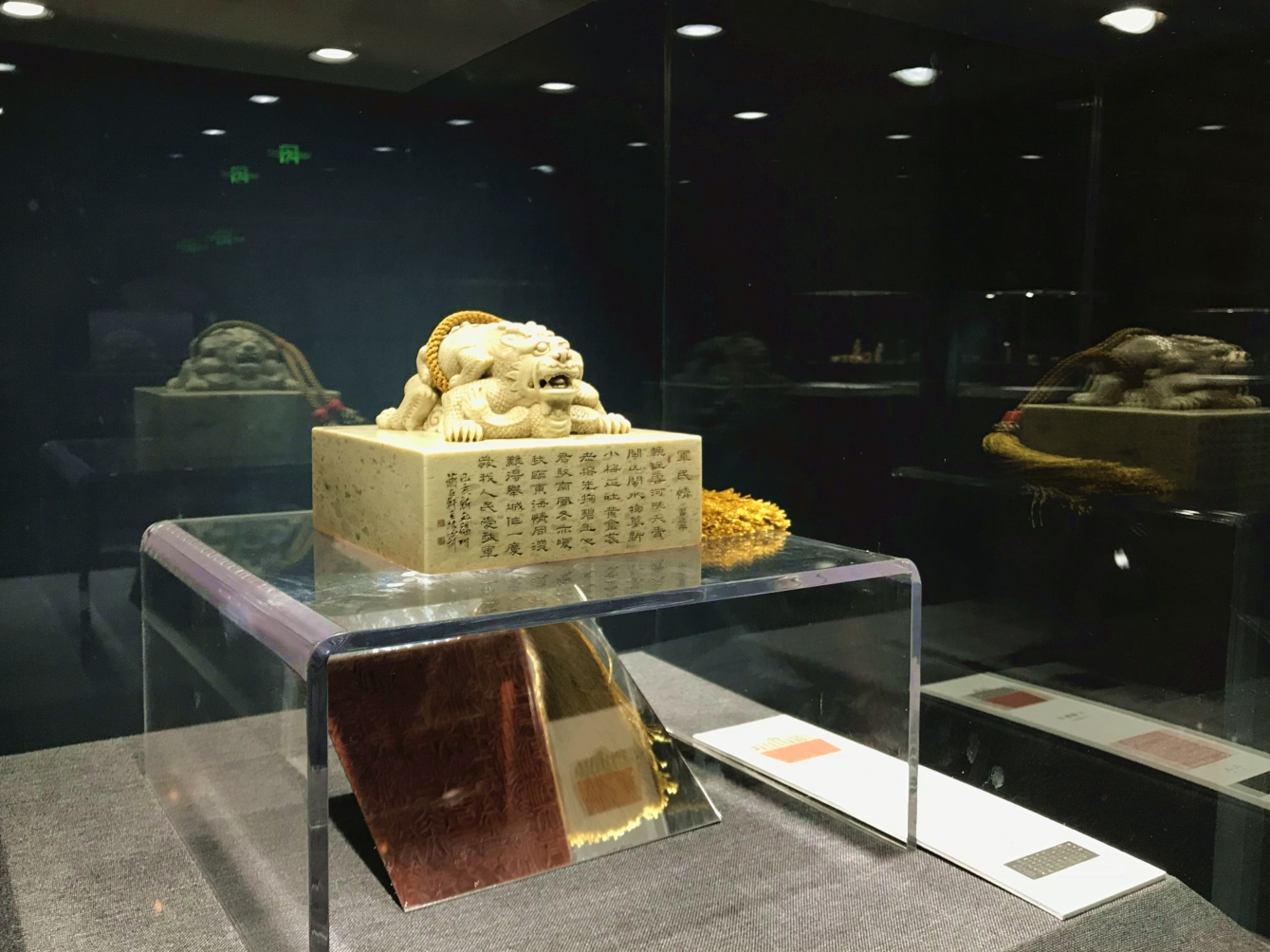 其中,以习近平主席在闽工作期间撰写的七律诗《军民情》为印文创作的《军民情》篆刻大印被中国美术馆收藏。此篆刻作品印面宽15cm,所作取法高古,结体严谨,章法平稳,布局均匀,错落有致,刀法细腻,线条古趣盎然。该印文多达56字,而极尽穿插呼应,运用自如,笔笔精到,宛若天成。