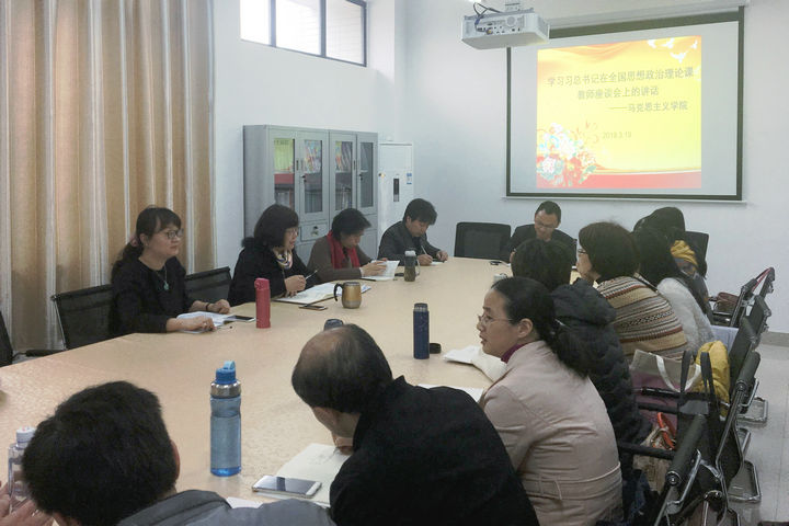 月19日下午,马克思主义学院组织召开座谈会,认真学习习近平总书记在学校思想政治理论课教师座谈会上的重要讲话精神。