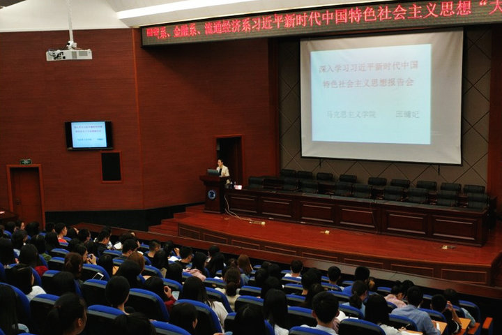 为进一步引导师生自觉运用习近平新时代中国特色社会主义思想武装头脑、指导实践,10月23日晚,国际经济与贸易系、流通经济系和金融系联合邀请学校党委讲师团成员、马克思主义学院邱镛妃副教授在马尾校区学术报告厅作“深入学习习近平新时代中国特色社会主义思想”主题宣讲,三个系的入党积极分子、学生干部和学生代表等共280多人聆听讲座。
