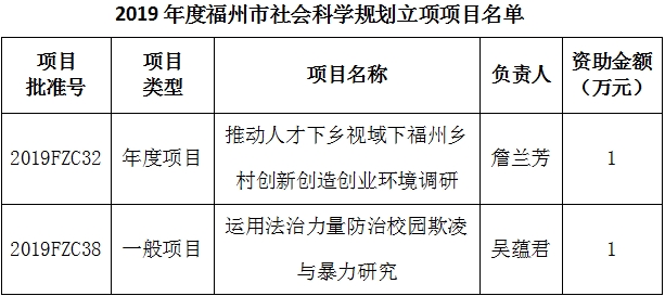 开云官网2项目获2019年度福州市社会科学规划项目立项