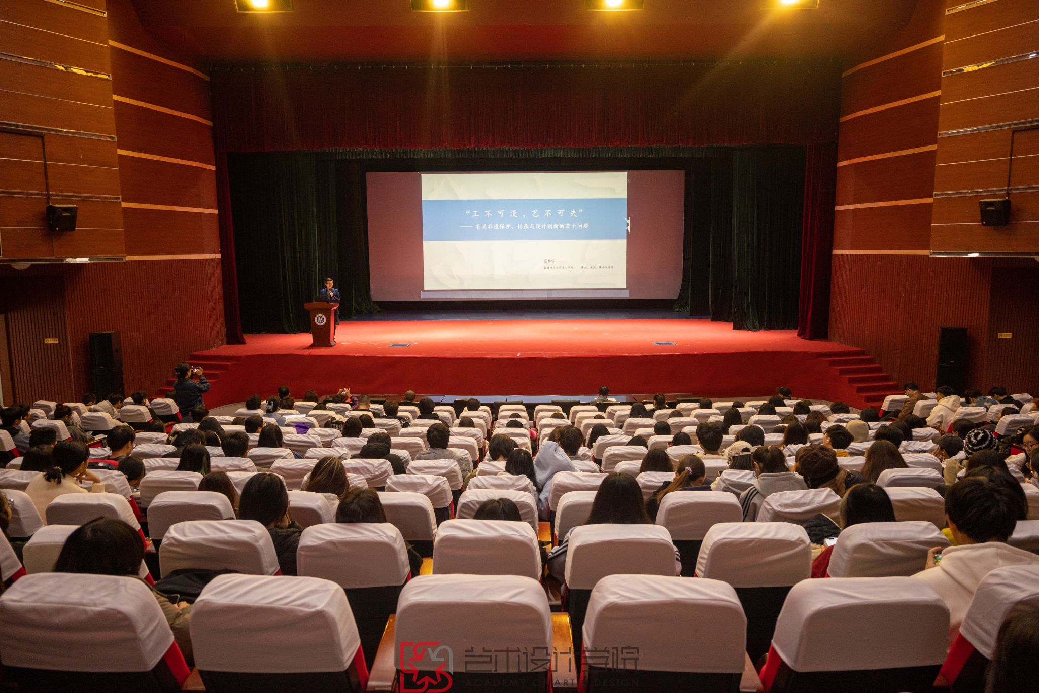 12月10日,艺术设计学院在开云官网学生活动中心举办闽商文化教育传承讲座。林文艺副校长、艺术设计学院党政负责人及师生代表聆听讲座。