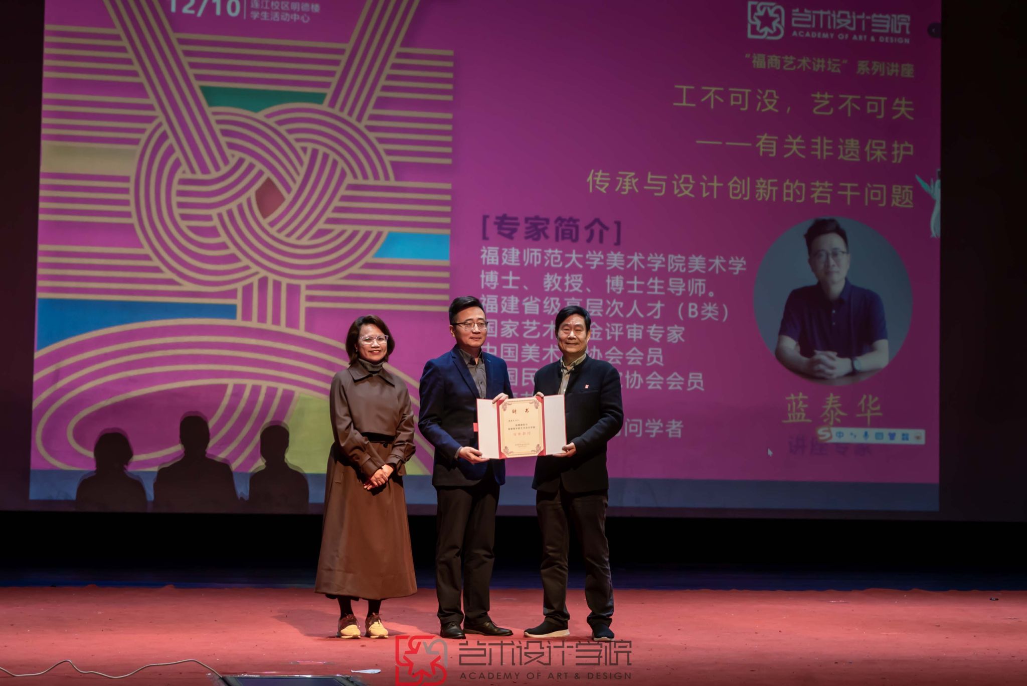 艺术设计学院还为蓝泰华教授颁发了客座教授聘书。