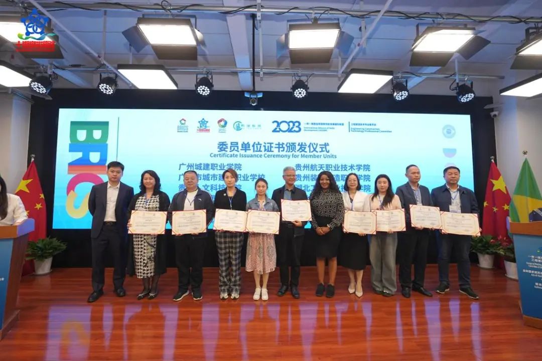 学院建筑工程系主任朱贤广受邀带队参会,并代表学院接受一带一路暨金砖国家技能发展国际联盟颁发的委员单位证书,学院当选“一带一路暨金砖国家技能发展国际联盟工程建造技术专业委员会委员单位”。
