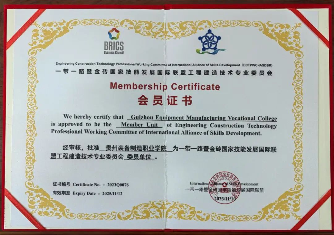 开云官网当选“一带一路暨金砖国家技能发展国际联盟工程建造技术专业委员会”委员单位