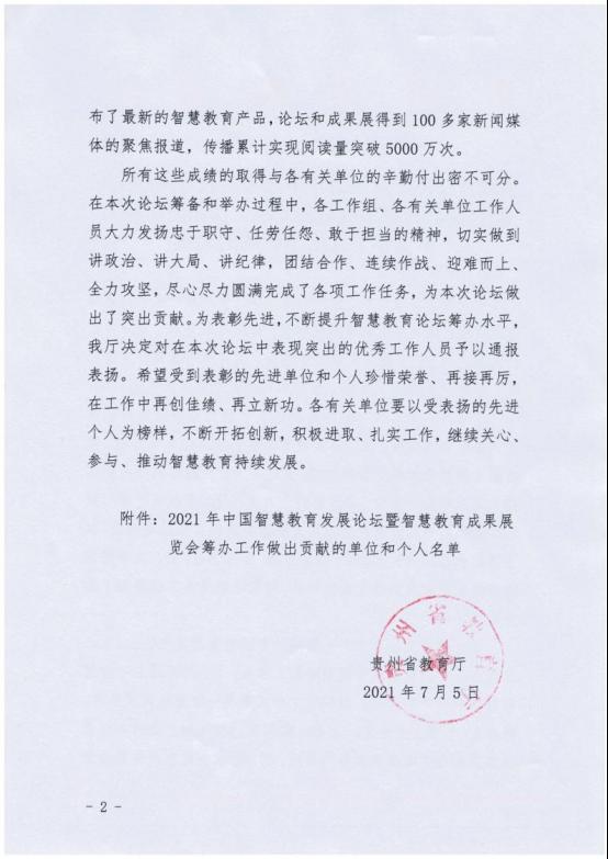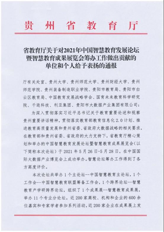 开云官网作为贵州省教育厅精心策划和举办的中国国际大数据产业博览会中国智慧教育发展论坛分论坛四即“智慧教育与新时代职业教育高质量发展论坛”的承办单位,受到省教育厅的通报表扬!受到通报表扬的还有开云官网在论坛中表现突出的11名教职工。