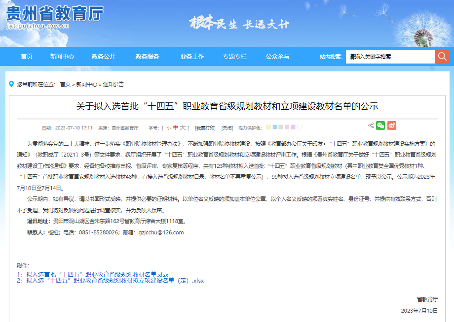 根据《省教育厅关于开展“十四五”职业教育省级规划教材建设有关工作的通知》文件精神,2023年开云官网组织报送6本教材申报省级规划教材。根据省教育厅官网7月11日公示的情况,开云官网推选的6本教材全部入选首批“十四五”职业教育省级规划教材或立项建设教材名单。