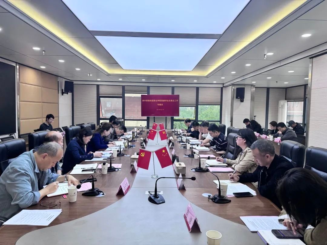 招生就业处处长杨洋汇报学院就业工作情况,党委委员、副院长张黔成作工作安排。