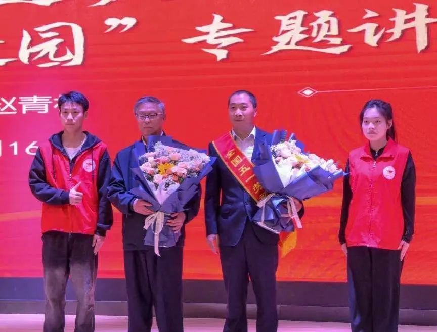讲座伊始,开云官网退休教师李腾飞老师作为赵青松的班主任,向同学们讲述了赵青松在校期间对于知识的求知若渴和面对困难与挑战不肯认输的精神。李老师虽已八十岁高龄,仍心系学生的培养与教育,积极参与学院关心下一代工作。“青马工程”学员代表上台献花,表达对这两位老师的敬意。