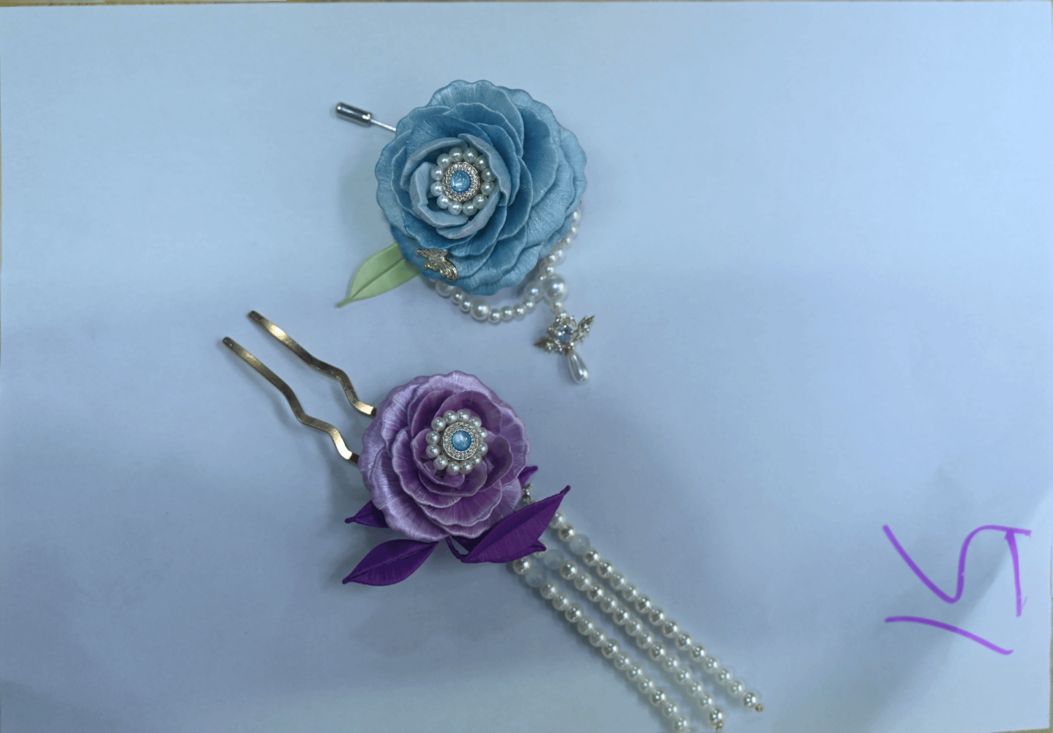 “非遗缠花、紫韵芳华、冰蓝玫瑰、珍珠之意 ”(手工DIY作品)