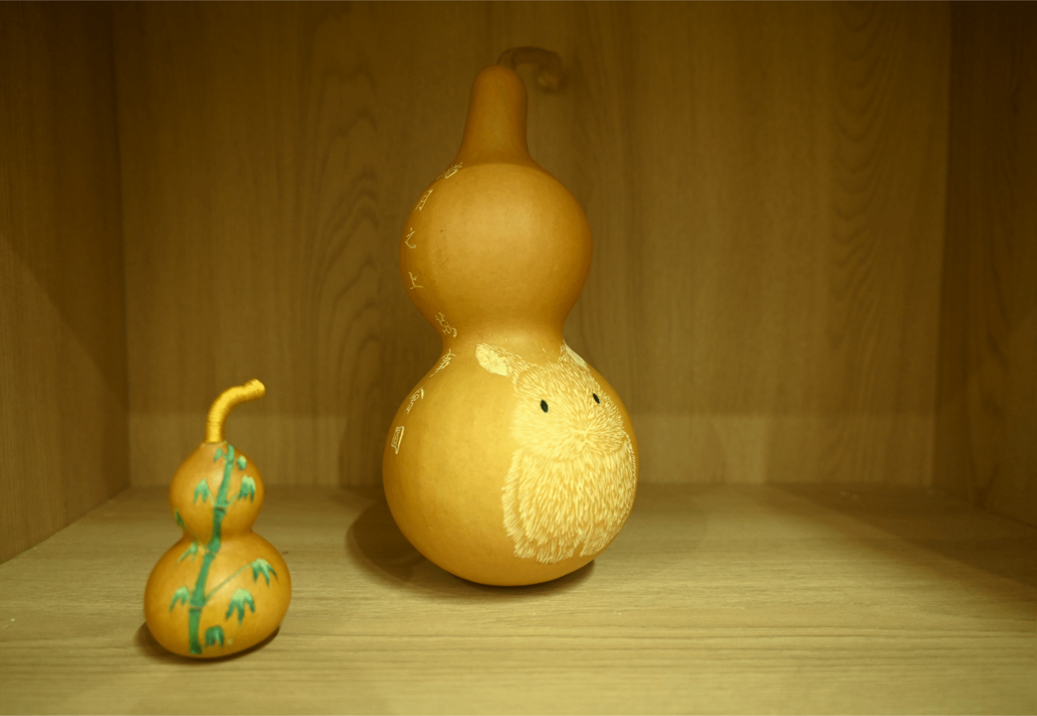 左:“竹韵福绿” 右:“玉蟾兔华”(手工雕刻)