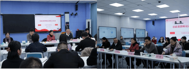 为深入学习贯彻党的二十大精神和二十届历次全会精神,贯彻落实习近平总书记关于思政课建设的重要指示精神,全面提升思政课教学质量,加强学校思想政治理论课教师队伍建设,1月4日,马克思主义教学部在知行楼A409智慧教室举办思政课教师说课展示活动。