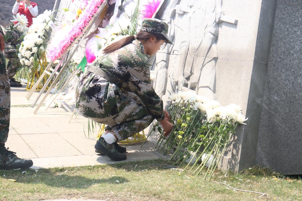 烈士陵园内,松柏葱茏,肃穆庄严。下午13时30分,清明节祭奠英烈仪式正式开始。全体参加缅怀英烈活动的师生在革命烈士纪念碑前整齐列队,队容严整,全员脱帽肃立,鞠躬默哀,深切表达对革命先烈敬仰、哀思之情。在深情的《献花曲》中,4名退役复学、预征班的教官稳稳抬起花篮,缓缓走向革命烈士纪念碑,将花篮敬放在纪念碑前。随后,在学院党委委员、副院长孙宁岗同志的带领下,每一位师生手执菊花依次走到烈士碑前,一起瞻仰了烈士英名录墙,为革命先烈敬献鲜花。缅怀英雄们的丰功伟绩;最后,全体人员整齐列队,齐唱《中国人民解放军军歌》,表达对革命烈士无比崇敬的心情。