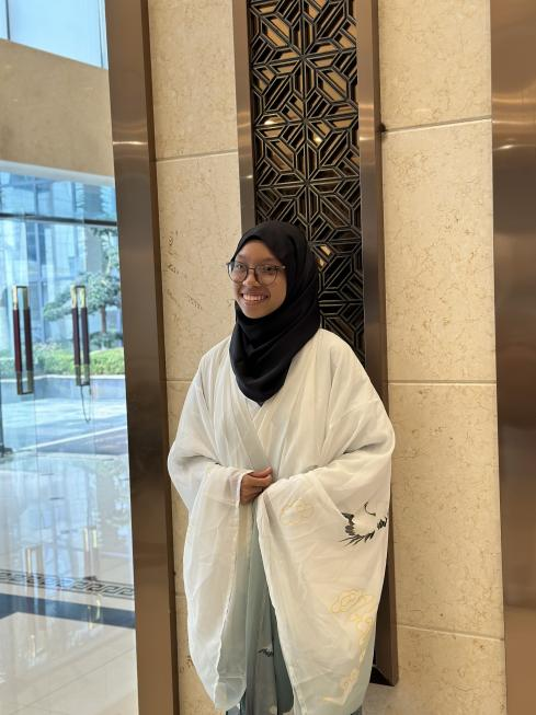 研学第二站在实训室体验汉服。汉服是中国传统的民族服装,因其设计与细节处理而备受赞誉。研学代表团都非常热情选择自己喜欢的汉服,并合影留恋,认识到了汉服的独特魅力。有同学激动地说到:“百闻不如一见,这是他穿过最帅气的服饰!”通过参加汉服文化活动,留学生们能更好的了解文化、历史和风俗习惯,增进了文化的理解和认同。