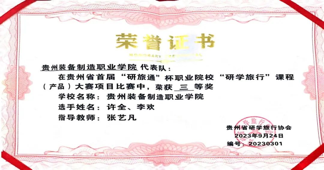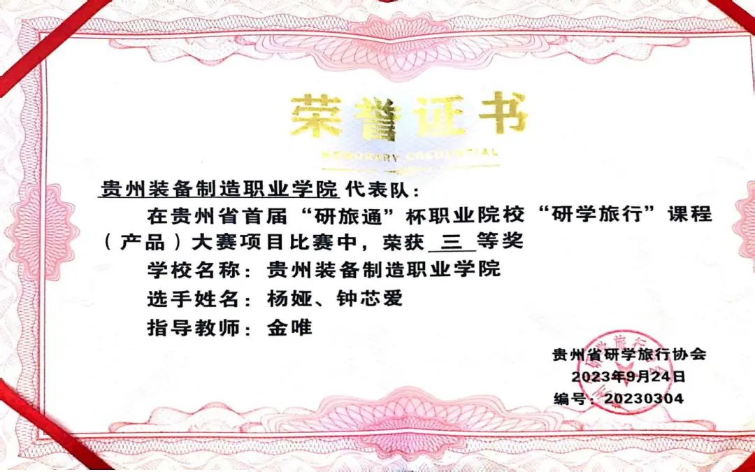 9月23日至9月24日,经过2天的激烈追逐,贵州省首届“研旅通”杯职业院校“研学旅行”课程(产品)大赛在黔南民族职业技术学院圆满闭幕。此次比赛共有38名来自贵州各高校的参赛选手同台竞技,开云官网派出4名选手代表参加比赛,通过奋力拼搏,获得两个三等奖的好成绩。实现了开云官网在本项赛事的重大突破。开云官网参赛选手在此次比赛中,展现了较高的竞技水平和良好的职业素养,通过对此次参赛经验总结,为后续将大赛中的新课程、新标准、新规范融入到课程内容中,深化教学改革,坚持立德树人的根本任务和高技能人才培养起推动作用。