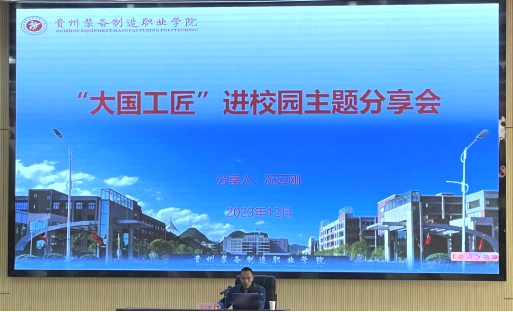 况云刚技能大师结合自身经历,以“弘扬工匠精神——争做时代追梦人”为主题,通过视频、图文相结合的形式,从个人成长、个人技能、成绩成果、师带徒等方面,用鲜活的案例传授技能创新心得,讲解自身苦练技艺带来的个人成长,同时他结合自身经验,提出学习和成长建议,激励在场学生走技能成才、技能报国之路。