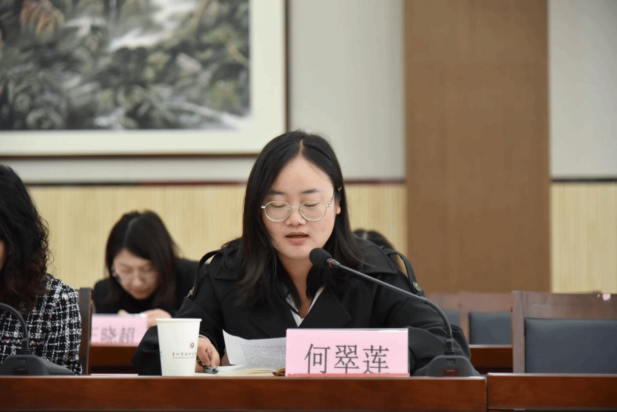 思政教师何翠莲同志作交流发言