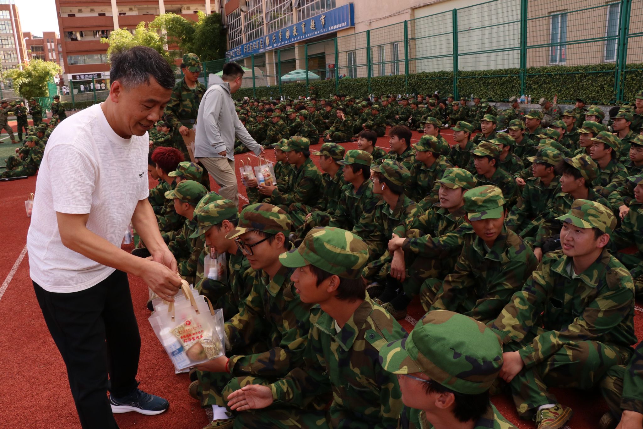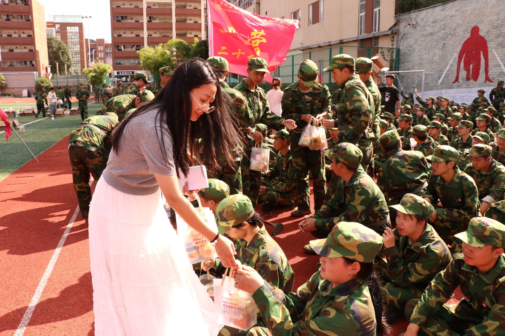 随后,系部领导与辅导员一同将慰问礼包逐一送到新生手中。接过满载关怀的礼物,新生们脸上绽放出感动与喜悦的笑容。一份清凉,一句问候,悄然拉近了师生之间的距离,也让远离家乡的学子真切感受到经济管理系大家庭的温暖与凝聚力。