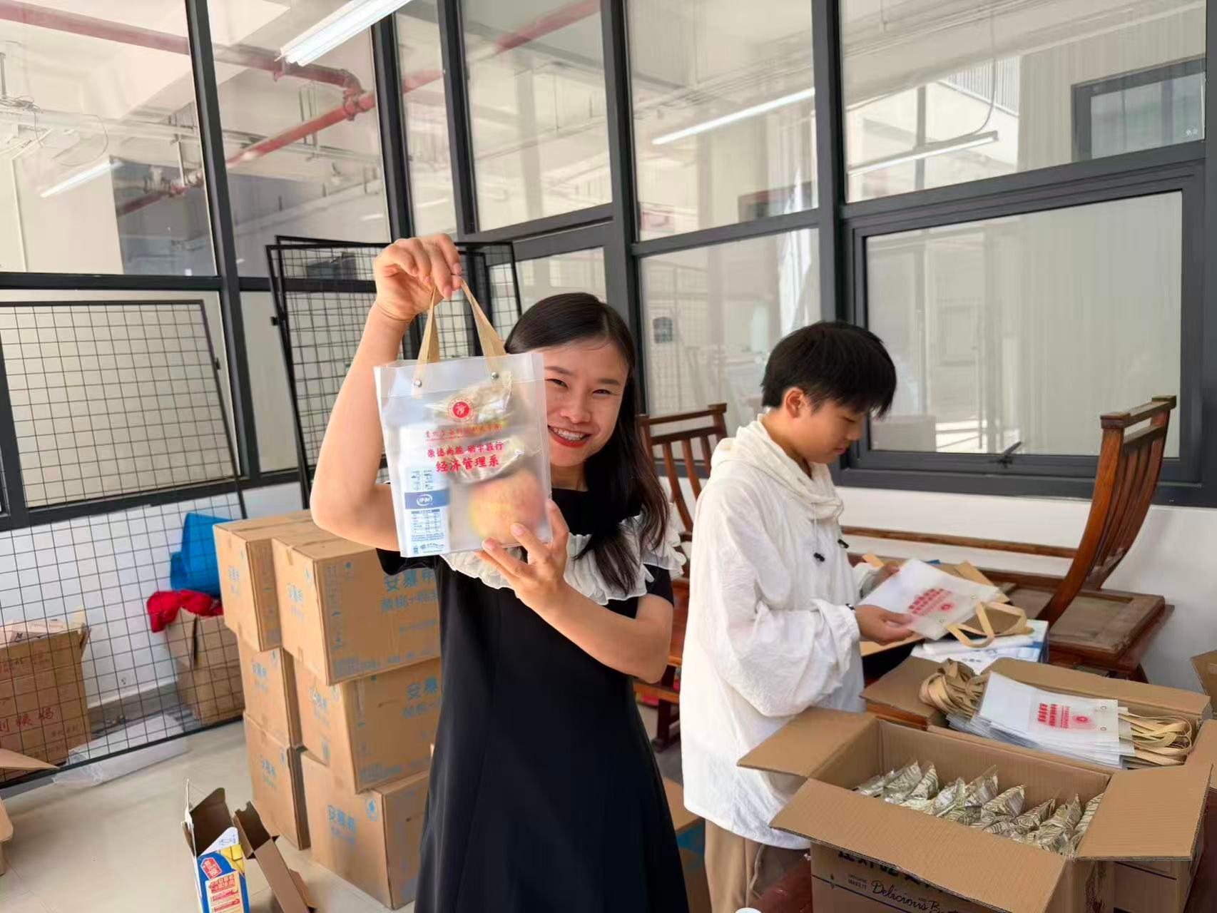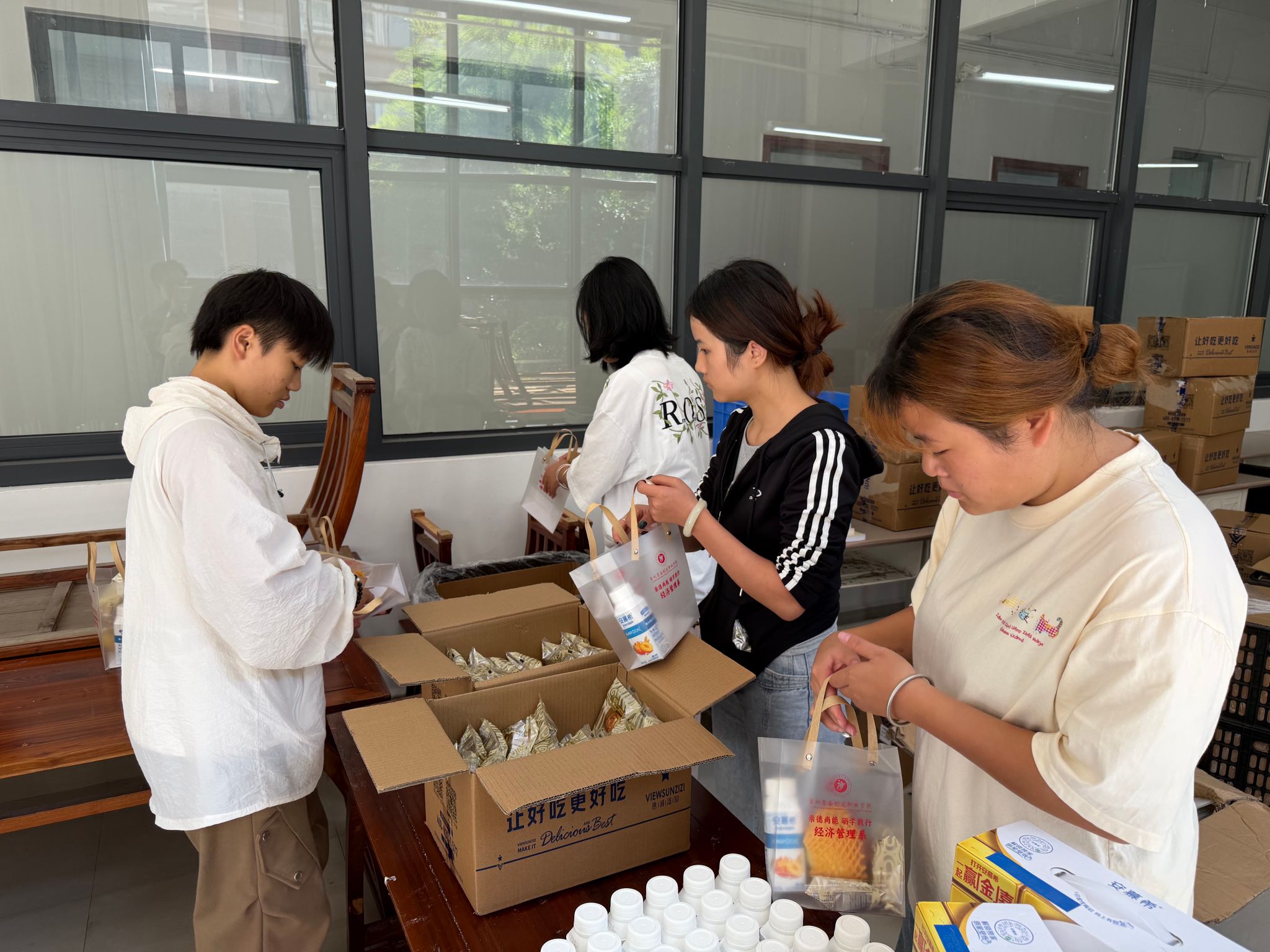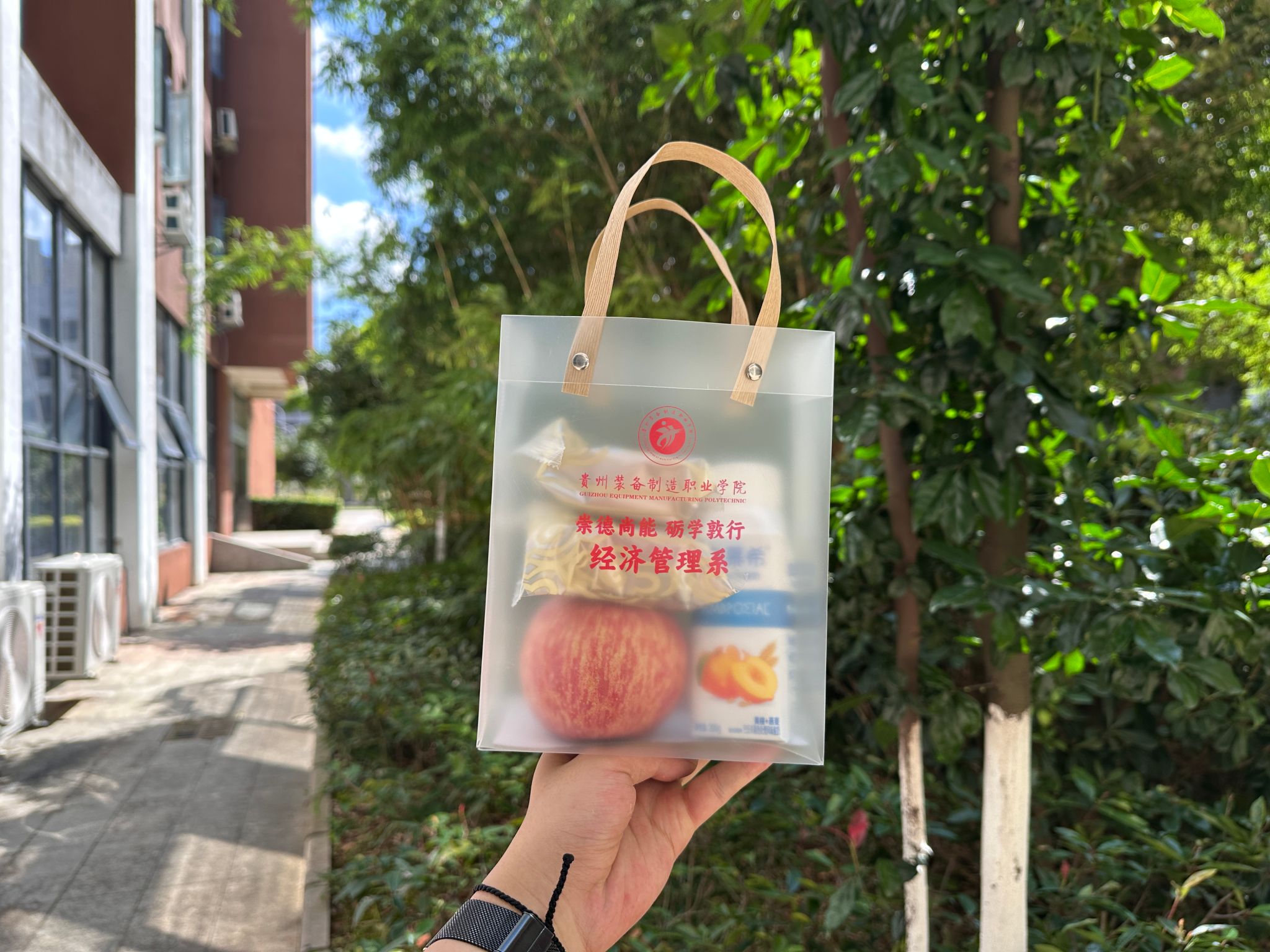 活动前夕,经济管理系团总支学生会的学长学姐们便已悄然忙碌起来,细心分装酸奶、月饼、苹果等慰问品。每一份礼包,不仅是物质的赠予,更是情感的传递——苹果寓意“平安”,月饼象征“团圆”,酸奶寄托“健康”,点滴细节中融入了全系师生对新生的真挚祝福。