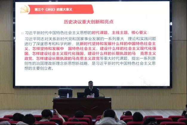 结合《关于若干历史问题的决议》(党的六届七中全会通过)和《关于建国以来党的若干历史问题的决议》(党的十一届六中全会通过)的历史背景、内容及意义,对比分析了《中共中央关于党的百年奋斗重大成就和历史经验的决议》。重点解读了习近平新时代中国特色社会主义思想实现了马克思主义中国化新的飞跃。强调了正确理解认识《关于党的百年奋斗重大成就和历史经验的决议》的重要性,生动阐释了“十三个方面”历史成就、“十个坚持”重要经验、“十个明确”科学概括和马克思主义中国化“三次飞跃”,深刻揭示了十九届六中全会重大的理论意义、历史意义、实践意义和世界意义。和教授还强调说,“两个确立”是这次全会最大的政治成果,必须把思想和行动统一到“两个确立”上来。
