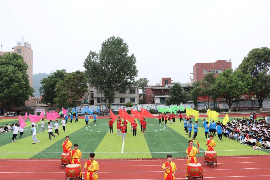 入场仪式结束后,中专部副主任周瑾宣布运动会开幕。开幕式的表演精彩绝伦,中国传统龙鼓表演,展示了绝妙的中华气韵;势如破竹的武术表演,迸发出中华儿女的气魄;轻盈活泼的健美操,显示出了飞扬活力的青春本色。