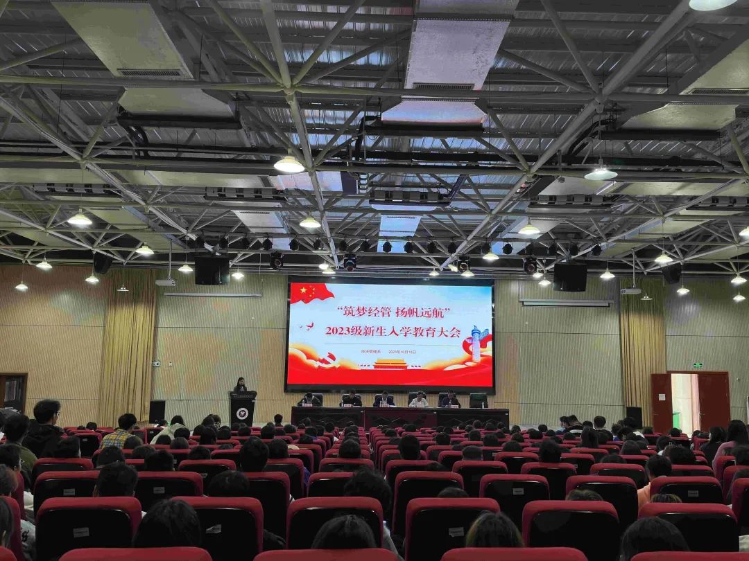 10月10日下午,经济管理系在德润楼101报告厅召开“筑梦经管,扬帆远航”2023级新生入学教育大会。