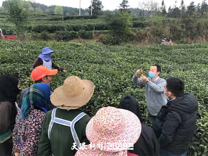 贵州大学绿色农药与农业生物工程教育部重点实验室科研人员在茶园为茶农做技术指导。