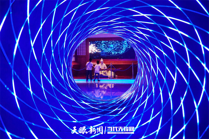 黔南州平塘县中国天眼景区,平塘国际天文体验馆内,游客在参观游览。(王波 摄 贵州图片库)