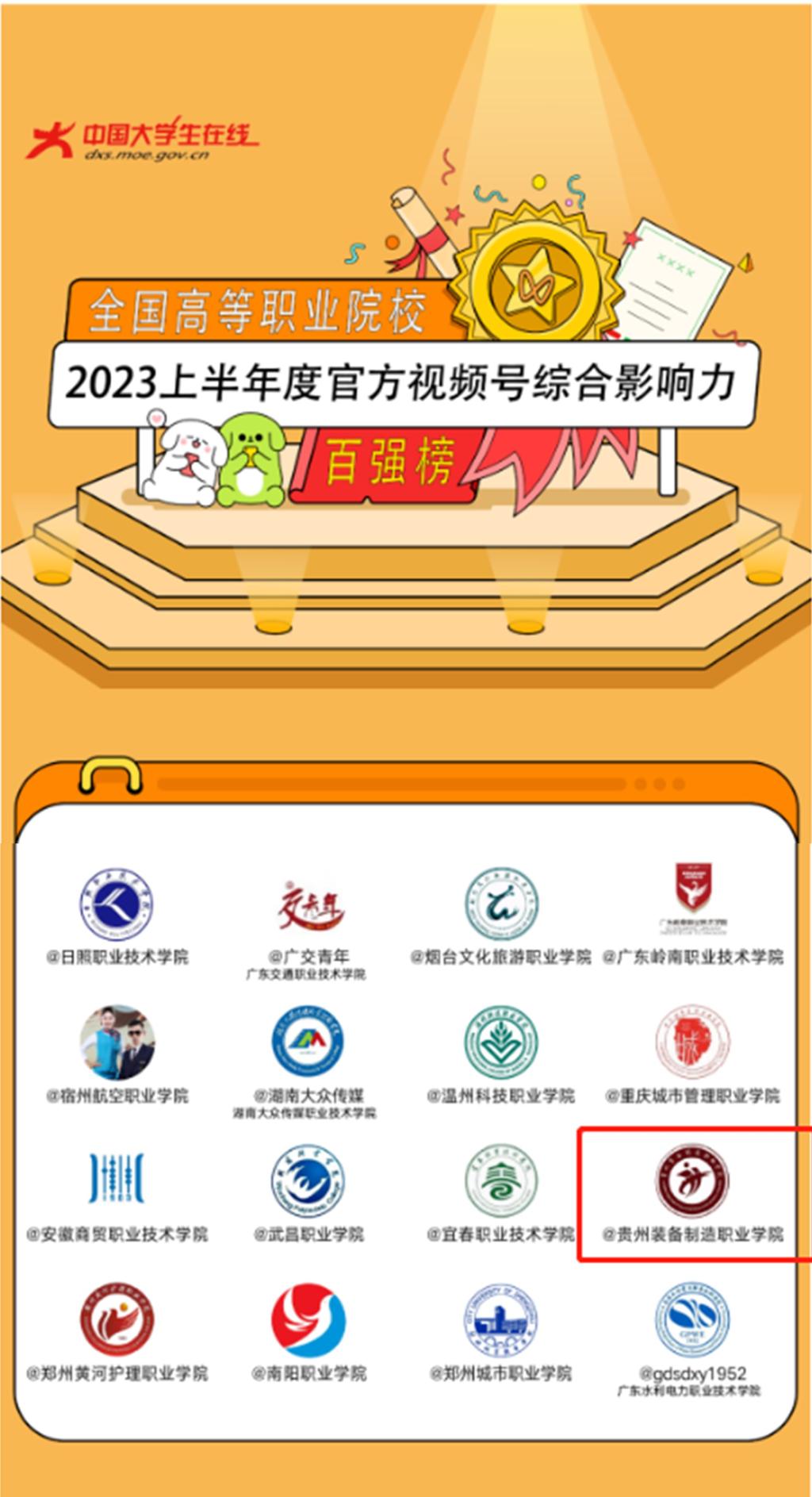 喜报丨kaiyun开云官方网站荣登“全国高等职业院校2023上半年度官方视频号综合影响力百强榜”