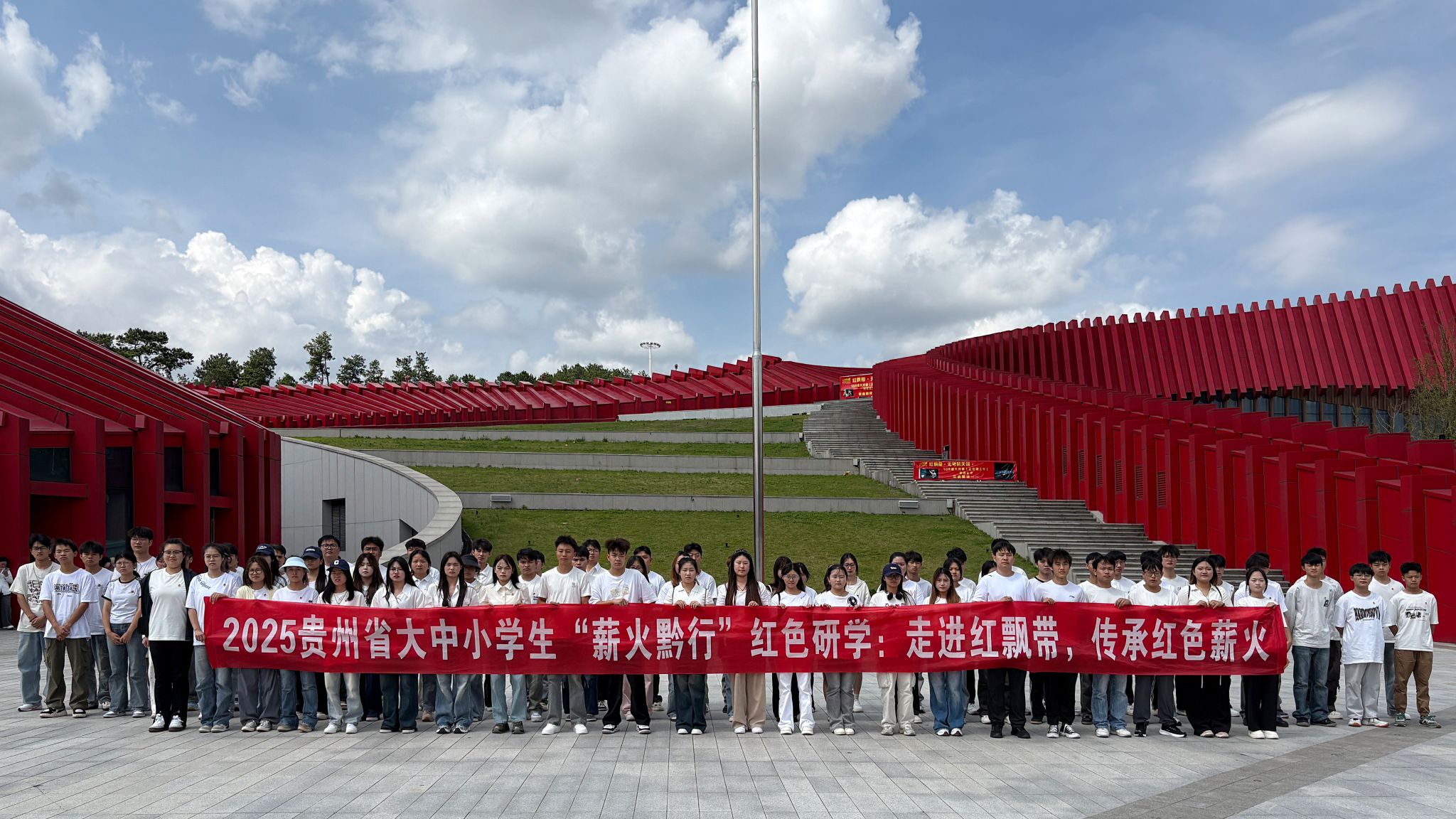 为充分发挥“红飘带”红色教育基地在开展思想政治工作中的典型示范带头作用,以红色研学推动大中小学实践育人深入实施,引导学生感悟新时代生动实践和伟大成就,着力打造具有贵州特色的“行走的思政课”。9月3日,开云官网75名优秀学生代表参加省委宣传部、省委教育工委、省教育厅组织的2025年大中小学生“薪火黔行—‘红飘带’”红色研学活动。