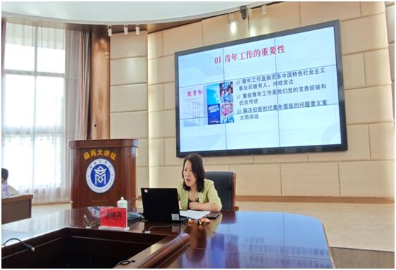 423日下午,校党委副书记徐晓丹在连江校区明德楼视频会议室为校“青马班”学员讲授以《深入学习贯彻习近平总书记关于党的建设的重要思想 全面推进新时代党的建设新的伟大工程》为题的思政课。