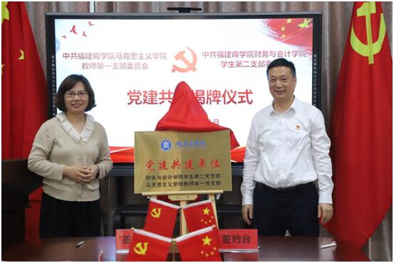 会上,双方签订了《党建结对共建协议书》,并举行了揭牌仪式。马克思主义学院党委负责人结合马克思主义学院党建基本情况,介绍了建设服务型党支部的工作理念,她表示要通过支部共建,充分发挥马克思主义学院教师在理论宣讲、竞赛指导、著作导读等方面的理论优势,更好地服务于学校发展、支部建设、学生成长。财务与会计学院党委负责人表示,要坚持以高质量党建为目标,将党的创新理论融入日常教育与实践中,努力培育打造高质量的党建“双创”成果。