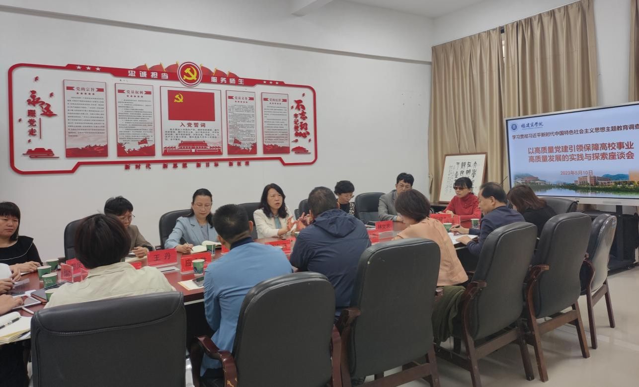 为深入贯彻习近平总书记关于调查研究的重要论述,进一步推动学习贯彻习近平新时代中国特色社会主义思想主题教育走深走实,推动党建工作与中心工作深度融合,5月11至12日,校党委副书记徐晓丹围绕以高质量党建引领保障高校事业高质量发展的实践与探索,分别在连江校区、马尾校区召开专题调研座谈会。各二级党组织负责人、党员院长代表、组织员代表、党支部书记代表、教师党员代表、组织部有关人员参加专题调研座谈会。