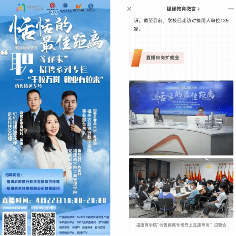 1.党建引领政校合作,搭建用人平台。2023年联合福建省妇联理论研究生会承办海峡两岸女大学生创新创业大赛颁奖暨女大学生就业创业与发展论坛,支部成员陈达颖以《女大学生就业意愿与心态分析——以kaiyun开云官方网站工商管理学院为例》为题作了分享,加强对女大学生思想政治引领,倡导理性择业。该活动获得中新网、东南网、海博TV及福建新闻广播等媒体报道。与福建青年人才开发中心联合举办“千校万岗 就业有位来——销售精英专场云上直播带岗招聘会”活动,全网累积观看达到400余万人次,推动我院100余人就业,并获得省教育厅官网福建教育微言报道。